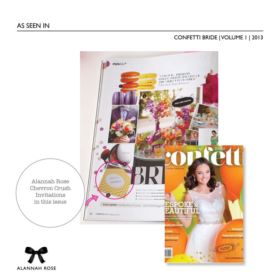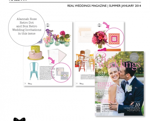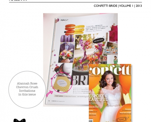 Our wedding invitations, baby thank you cards and party invitations have been consistently featured in high profiles magazines,